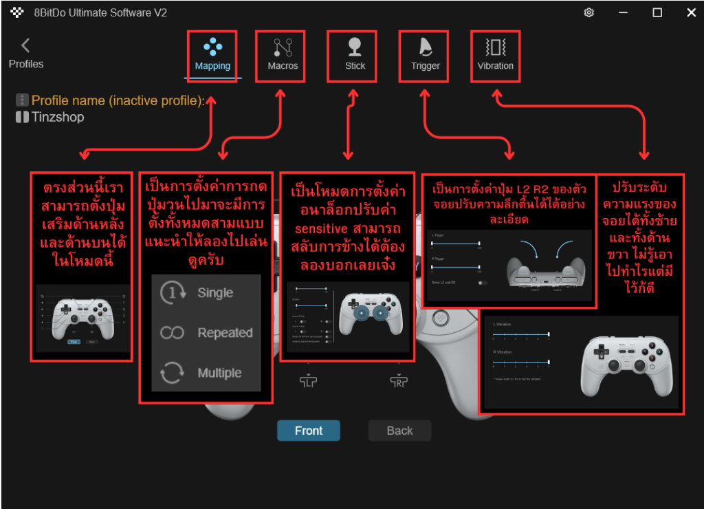 | ซอฟต์แวร์ปรับแต่ง | 8BitDo Ultimate Software V2 (แม็ปปุ่ม, sensitivity, macro, vibration) |
